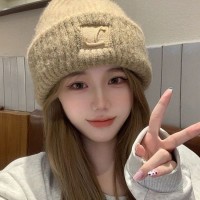 新款大头帽子毛线帽子女秋冬季宽松保暖堆堆针织冷帽大脸护耳显脸