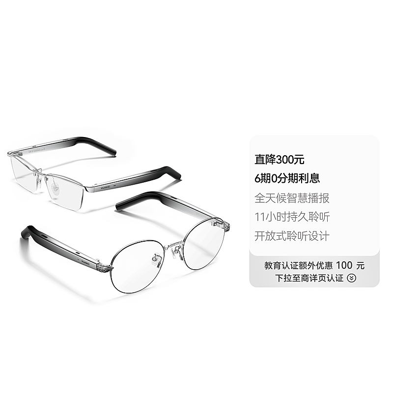 华为智能眼镜 2 钛空银 钛空圆框光学镜