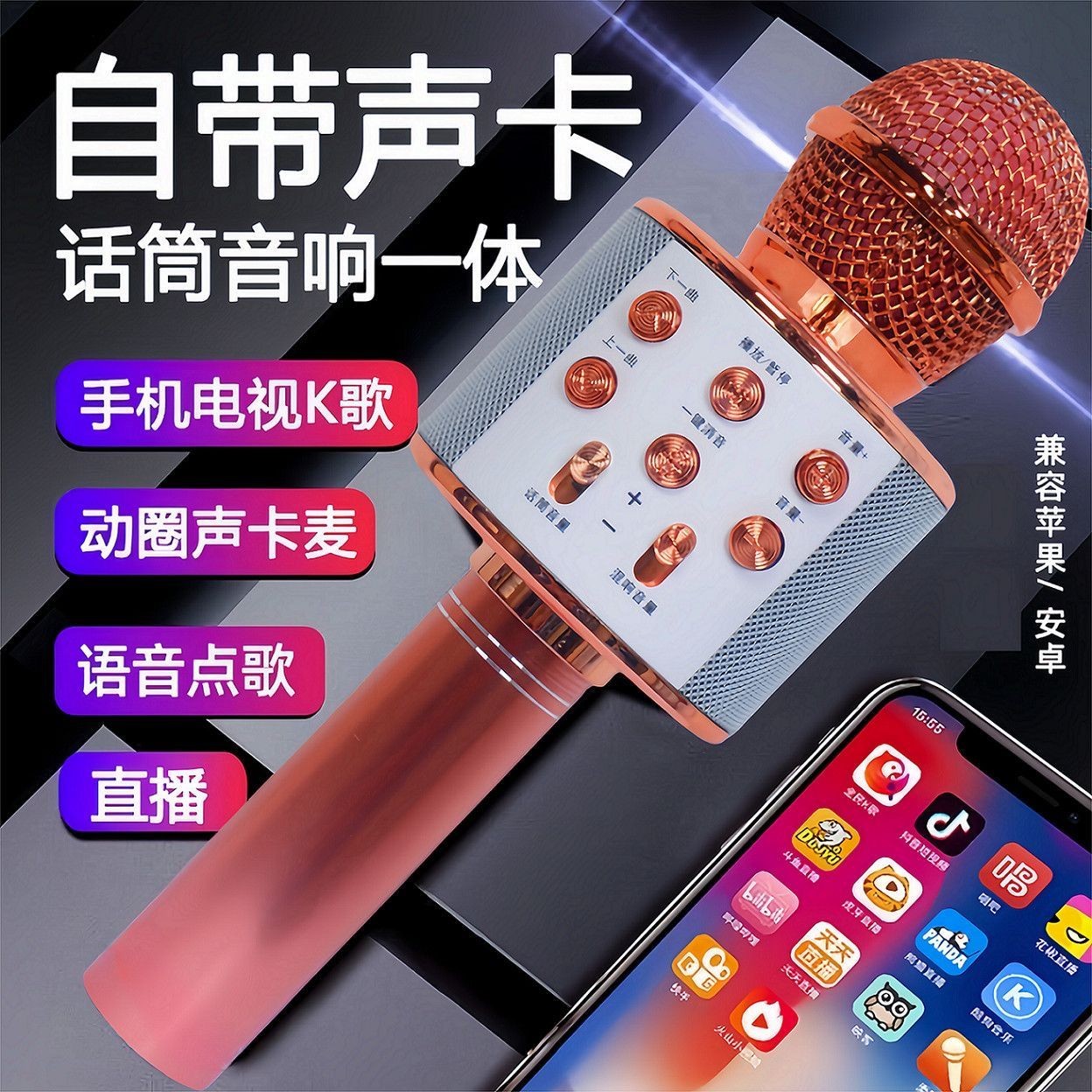 话筒音响一体麦克风手机唱歌神器自带声卡无线蓝牙家用电视短视频